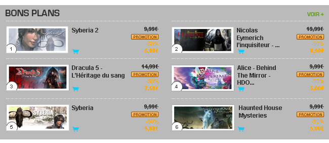 Afin de célébrer le lancement du nouveau site, durant 15 jours (du 05 au 20 Mai 2014), tous les membres recevront un jeu gratuit ("The Secrets of Atlantis" sur PC et Mac) sans aucune obligation d’achat ainsi qu’une remise de 50% sur l’intégralité du catalogue disponible (PC/MAC).